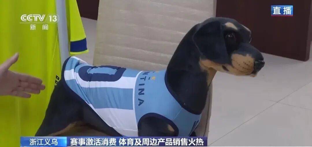 跟往年不太一样,今年设计的款式更加丰富,穿着群体也更加多元,每款球迷服都新增了儿童版、宠物版。这些款式特别受海外客户喜爱,不少客户一看样品,就表达了下单意向。